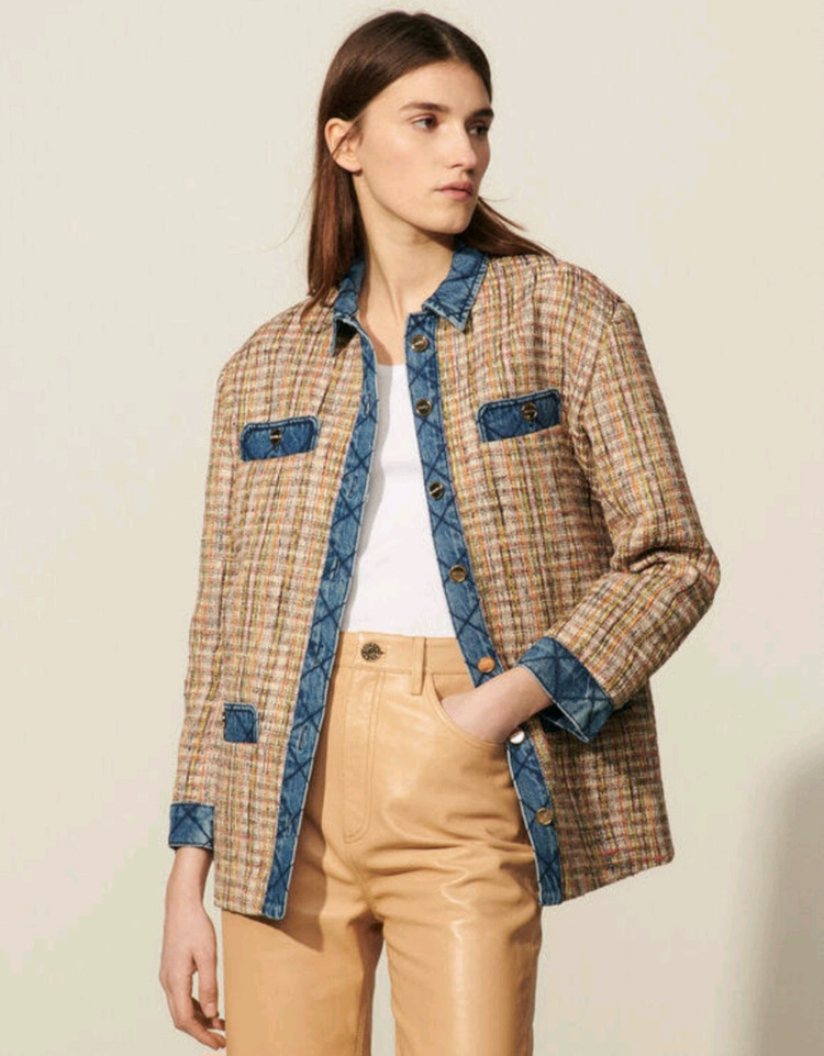 산드로 크리스틴 멀티 트위드 데님 자켓 34
