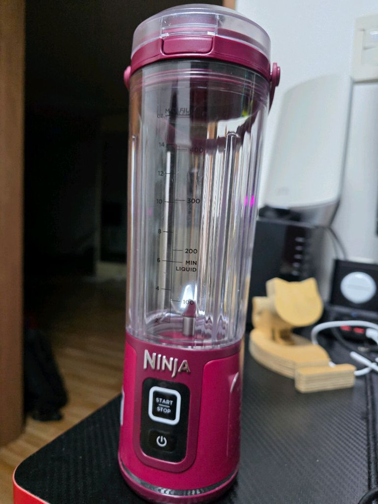 닌자 휴대용 블렌더입니다 - 400ml 용량으로 개인용으로 사용하기 좋아요 - 강력한 분쇄력으로 짧은 시간 안에 스무디나 주스를 만들 수 있어요 - 휴대성이 좋아서 어디든 가지고 다닐 수 있어요 *2025년 9월 25일에 구입해서 5번 정도 사용했습니다 우체국택배로 보내드립니다!