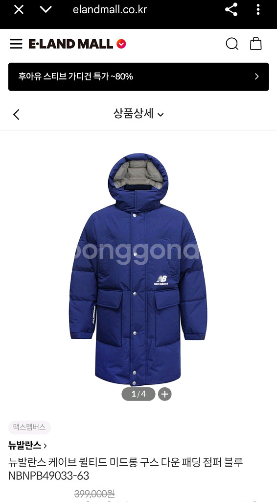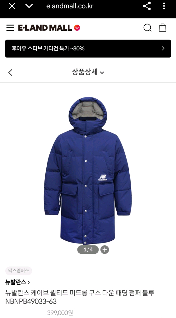 뉴발란스 케이브 퀼팅 미드롱 구스다운 블루