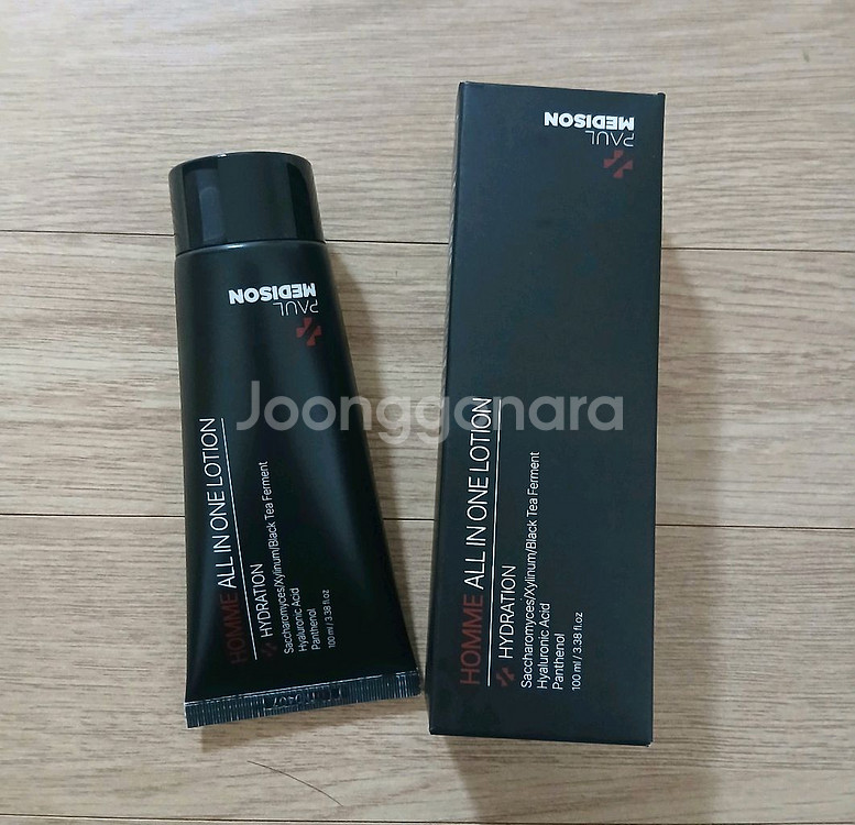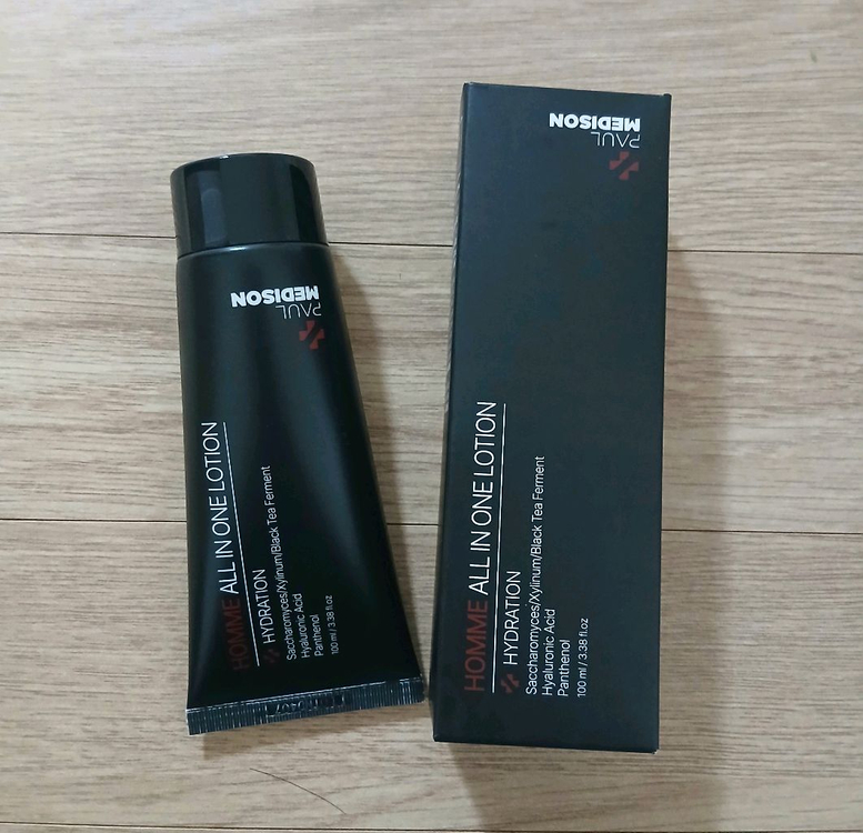 올인원 수분충전 로션이에요. 박스와 제품 모두 새것 같은 깨끗한 상태입니다. 남성용 올인원 로션으로 피부 고민 해결에 도움이 될 것 같아요!