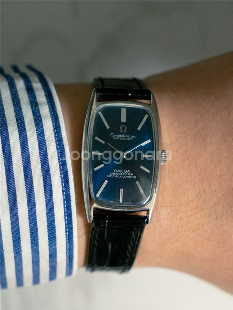 ■ 기본 정보 • 다이얼: 네이비 청판 • 사이즈: 23*40 mm • 구성품: 시계본품 • 상태: 오버홀 및 점검 완료, 외관 보존 상태 우수 ⸻ ■ 컨스틸레이션(Consetllation) 라인의 등급 설명 오메가 라인업 중 컨스틸레이션은 브랜드의 최상위 드레스워치 라인으로 자리 잡고 있습니다. 씨마스터나 드빌보다 상위에 위치하며, 오메가의 기술력·정밀도·마감의 정점을 보여주는 플래그십 등급입니다. 특히 컨스틸레이션 초기 라인은 모두 **‘천문대 공식 인증’(Observatory Certified)**을 기반으로 제작되었을 만큼, 정밀도를 최우선으로 하는 상징적인 모델군이고, 따라서 컨스틸레이션이라는 이름 자체가 이미 고등급 라인을 의미합니다. ⸻ ■ 크로노미터(Chronometer) 인증의 가치 해당 모델은 일반 자동이 아닌 크로노미터 인증 오토매틱 • 크로노미터는 스위스 공식 기관(COSC)의 정밀도 테스트를 통과한 최고 등급 무브먼트 • 빈티지 시계 중에서도 크로노미터 인증이 있는 모델은 훨씬 희소하고 가치가 높음 • 오메가에서도 상위 라인에만 적용되는 고정밀 무브먼트 즉, 컨스틸레이션 + 크로노미터 + 자동 + 청판 조합은 실제 시장에서도 보기 어려운 고스펙 빈티지 모델 ⸻ ■ 이 모델이 특별한 이유 • 탱크 쉐입임에도 컨스틸레이션 + 크로노미터 + 오토매틱 조합이라는 점에서 희귀성 높음 • 특히 흔하지 않은 네이비 청판 다이얼을 적용한 레퍼런스 • 상위 라인의 정밀도·내구성·마감 모두 갖춘 모델로, 수집 가치와 실사용 만족도가 모두 높은 빈티지 컨스틸레이션 ⸻ ■ 거래 조건 • 경기도 구리 직거래 / 택배·퀵 거래 가능 • 네고는 불가합니다