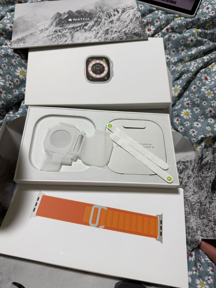 애플워치 모으다가 판매합니다 애플워치 울트라 1세대 단순개봉 후 활성화만 한 제품이며 충전기, 동봉된 정품밴드 미개봉 상태입니다 전면필름 붙여둔채로 보관만 한거에요 개봉씰이랑 초기포장지까지 다 있습니다 가격은 65 직거래 목포