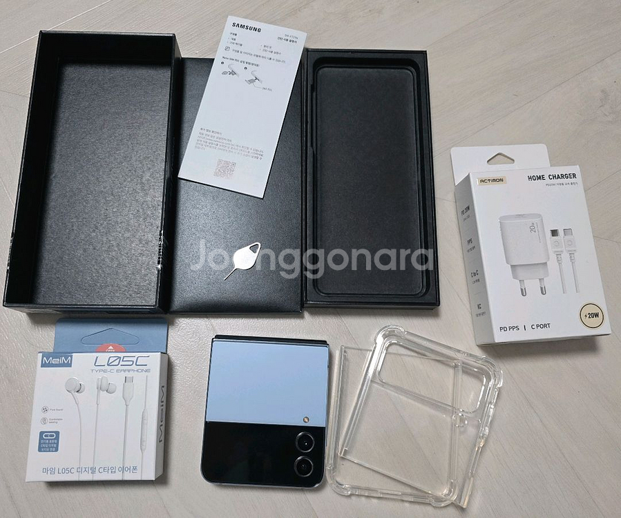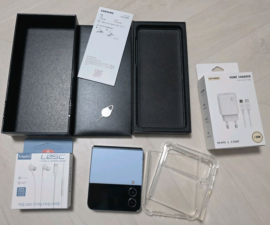 Galaxy Z Flip4 256GB Blue (SM-F721N) 정상해지, 기능이상없음, 액정파손없음. [구성품] ● 갤럭시 Z 플립4 본체 1대 ● SIM 이젝터 1개 ● C to C 가정용 고속 충전기 1개 ● C타입 유선 이어폰 1개 ● 간단사용설명서 ● Z 플립4 케이스 거모동 산들공원 앞 직거래 합니다.