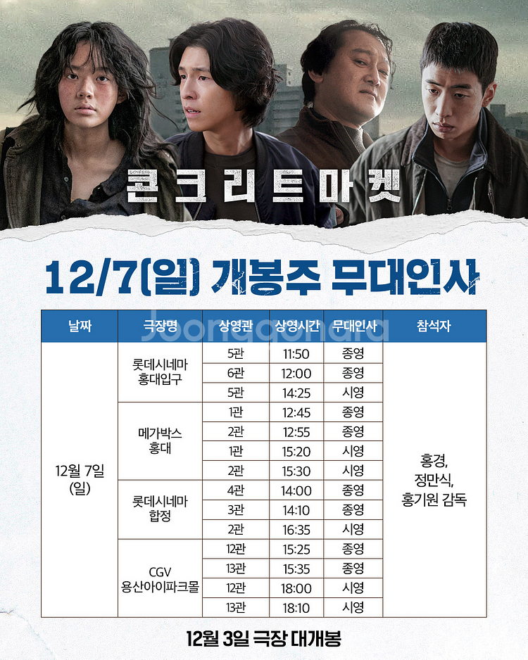 [통로석]12월7일 콘크리트 마켓 무대인사 홍경 A열~양도 / 왕십리 건대 월드타워