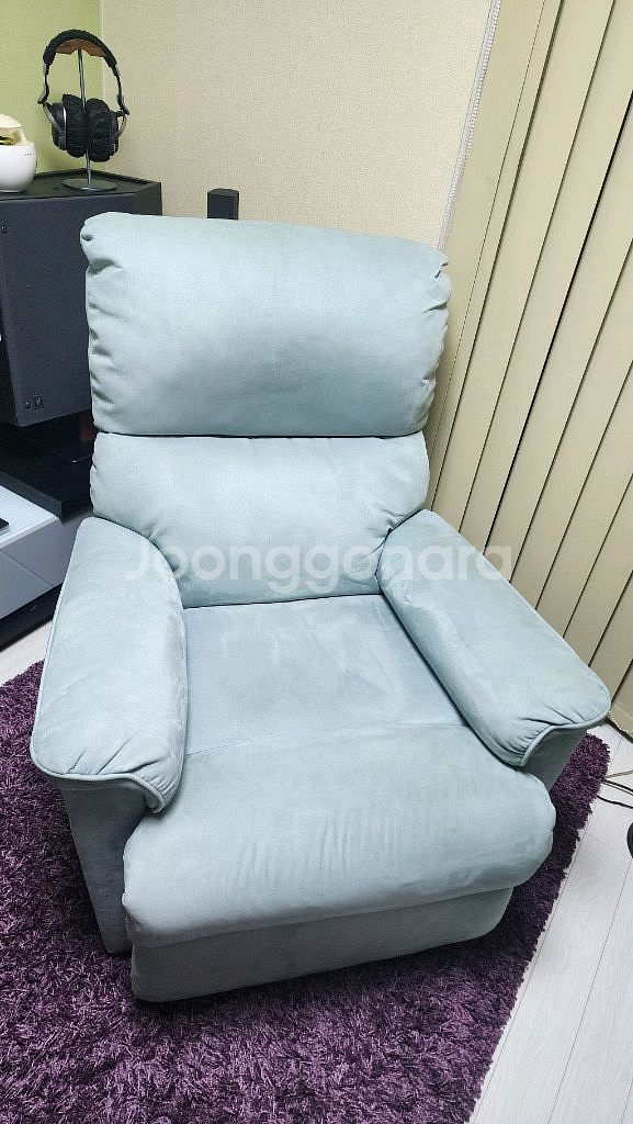 깔끔한 민트색 전동 리클라이너 소파예요. 편안한 쿠션감과 편리한 기능으로 거실에서 휴식을 취하기 좋습니다. 사용감은 있지만 전체적으로 깨끗한 상태입니다. 특히 오염에 강한 소재라 안심하고 사용할 수 있어요. 인천주안 직거래