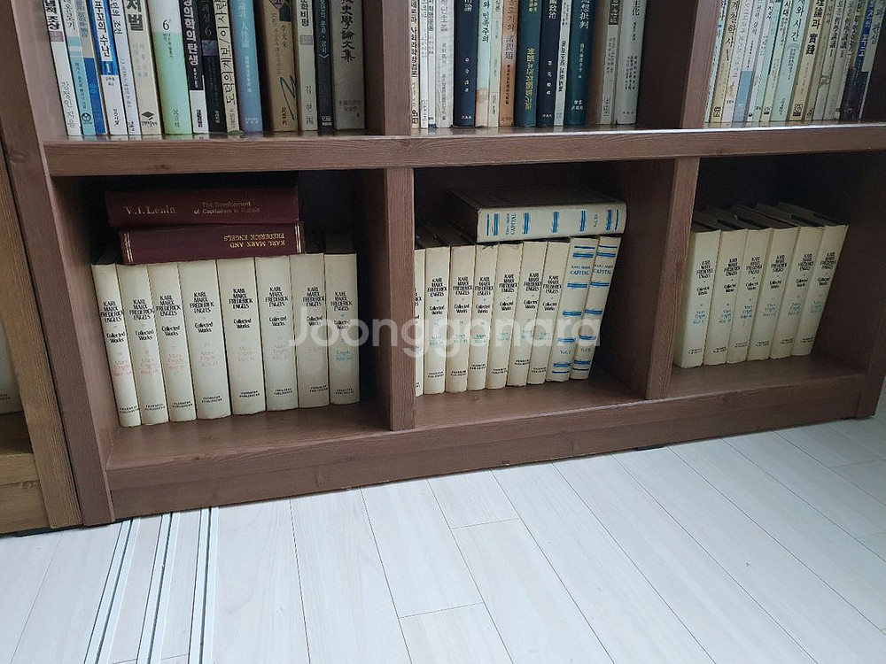 마르크스 저작 영문판이고 자본론을 포함해서 44권입니다. 책장에 깔끔하게 정리되어 있고 상태가 양호해 보입니다. 마르크스를 공부하거나 수집용으로 좋을 것 같아요.
