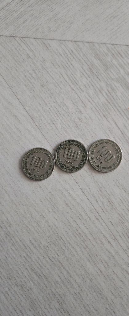 1973년도 100원동전 3개입니다.