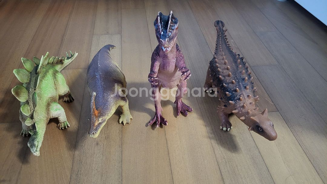 살때 30만원 정도 들은 공룡 피규어 입니다. 아이들이 좋아하는 공룡 피규어4종 일괄로 판매합니다. 딜로포사우루스 안킬로사우루스(다른 것과 달리 말랑한 재질) 스테고사우루스 파라사우롤로푸스 크기: 500ml 생수병이랑 같이 찍은 사진 보시면 아시겠지만, 손바닥만 한 작은 사이즈가 아니라 큼직합니다. 아이들이 잡고 놀기 딱 좋습니다. 내구성: 튼튼한 재질이라 잘 부러지지 않습니다. 안킬로는 말랑한 재질입니다 상태: 아이가 가지고 놀던 것이라 약간의 사용감은 있지만, 크게 파손되거나 망가진 곳은 없습니다. 직거래 가능합니다.