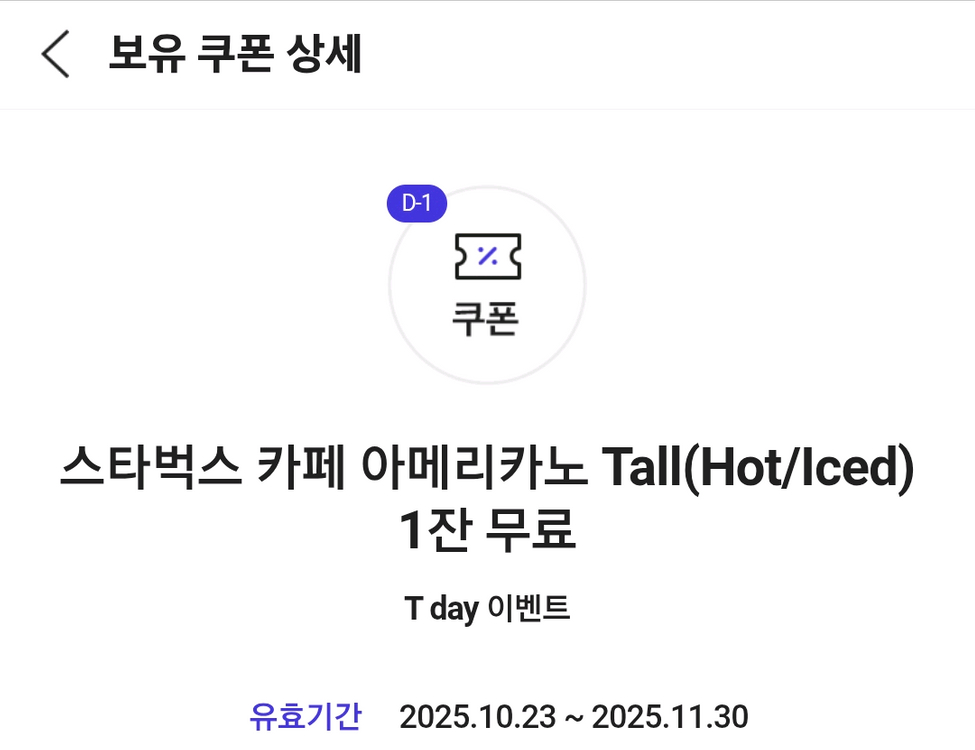 카운터에서만 사용 가능한 쿠폰 내일까지!! (11/30) 다른 음료로만 변경 가능하고 푸드 변경X 바코드 스샷 보내드려요 바로 입금 가능하신 분만 채팅주세요🙂 다른 제조 음료로 변경 가능하며, 4,700원을 초과하는 제조 음료의 경우 추가 금액을 지불하면 변경 가능합니다. * 제외 음료 : 병음료,생수,요거트,리저브/티바나 특화 음료, 칵테일/믹솔로지(알코올 음료) 등 일부 음료 추가 금액을 내면 상위 사이즈로 변경하실 수 있습니다. (Trenta 사이즈도 가능) 카페 아메리카노 Tall 사이즈 금액(4,700원)보다 낮은 제조 음료를 주문하신 경우, 차액은 환불되지 않습니다.(개인컵 할인 적용 후에도 동일하게 적용됩니다.) 이 쿠폰은 스타벅스 앱에 등록하여 사용하실 수 없습니다. 쿠폰을 다운로드 하신 후 스타벅스 매장에서 직원에게 쿠폰을 제시해 주시기 바랍니다. (사이렌 오더 및 딜리버스 주문 시 사용 안 됨 불가) 이 쿠폰 사용 시 2025 윈터 e-프리퀀시 이벤트의 e-스티커 적립은 제외됩니다.