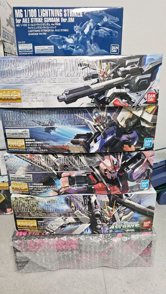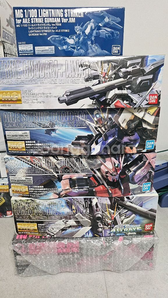 MG 스트라이크 건담들 일괄판매합니다 미조립 프라모델입니다. 박스 상태 양호하고 완전 미개봉 새제품이에요. 건담 팬이라면 놓칠 수 없는 아이템입니다! 합금프레임1개 추가로 드립니다