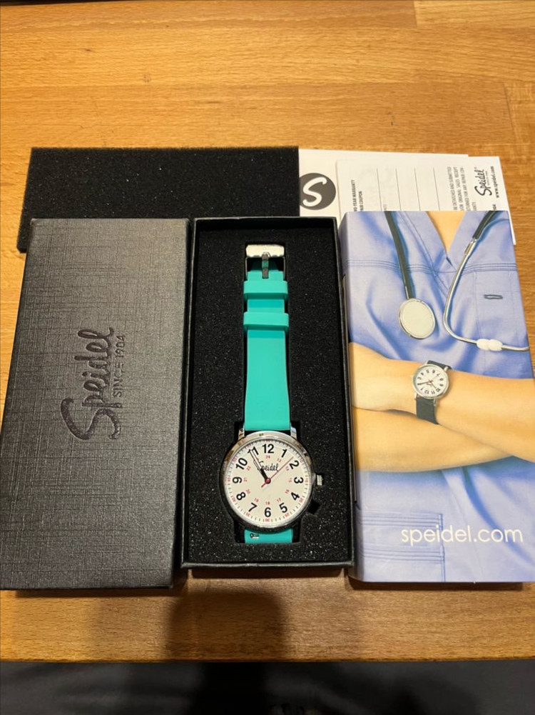 개인정보(거래정보)를 주고받는 행위는 사기에 노출될 수 있으므로 즉시 중고나라로 신고해 주세요스피델 의료용 방수시계 판매합니다. 다이얼 사이즈는 외부기준 38mm정도 되네요. 실리콘 민트색 손목끈이 달려있구요. 미사용입니다. 배터리를 갈지않았는데 아직 시계바늘이 잘 움직입니다.