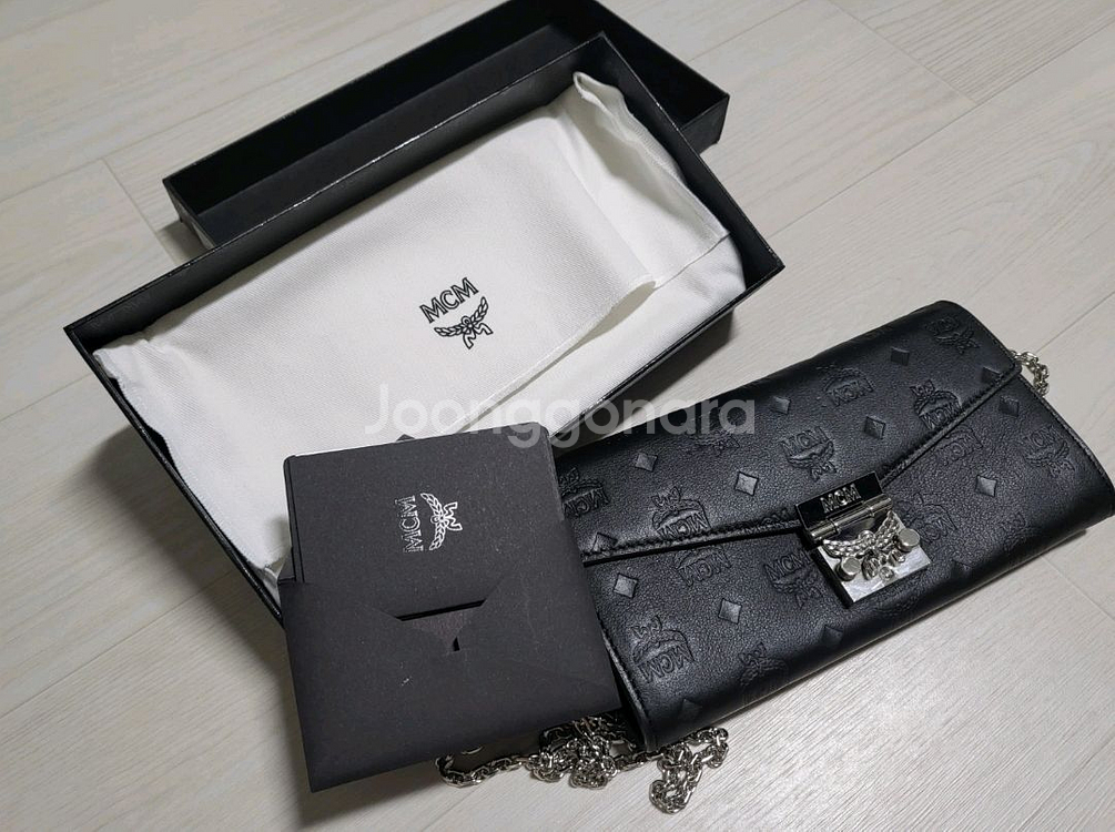 정품 여성용 체인 클러치백이에요. 블랙 컬러에 시그니처 로고 패턴과 메탈 장식이 고급스럽고, 박스와 더스트백 모두 포함되어 있어요. 상태 양호한 제품입니다. MCM 체인 반지갑 블랙 색상입니다 * 엠보싱 로고와 은장 장식이 포인트입니다 * 소가죽 재질로 고급스러워요 * 다양한 카드 수납공간과 지퍼 포켓으로 실용적입니다 * 사이즈는 19 x 9.5 x 3 cm입니다 상태는 사진과 같습니다 박스 포함입니다중고나라는 안전한 거래 문화를 위해 노력합니다. 사기 예방을 위해 개인정보나 거래 정보를 주고받는 행위는 이용이 제한될 수 있습니다. 안전한 거래를 위해 안심결제를 이용해 주세요.