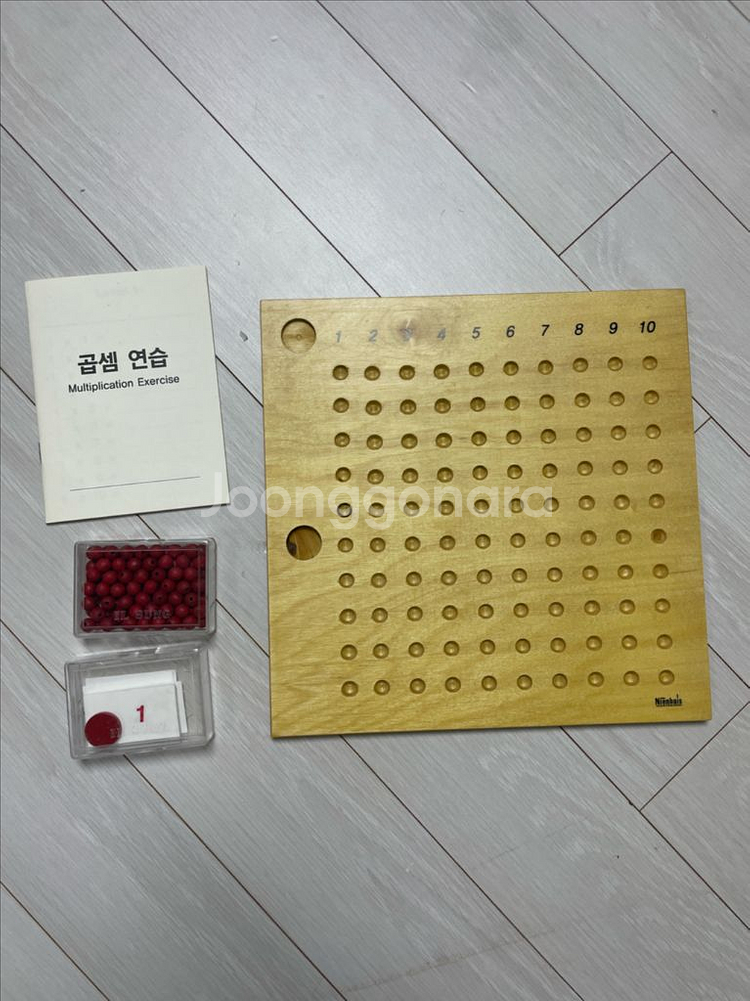니엔후이스 몬테소리 곱셈판 입니다. 구슬이랑 숫자카드 전부 있습니다. 빨간 원은 하나만 있는게 맞는지 모르겠네요... 12월까지만 판매하고 정리합니다. 네고 반품 환불x 택배비 별도