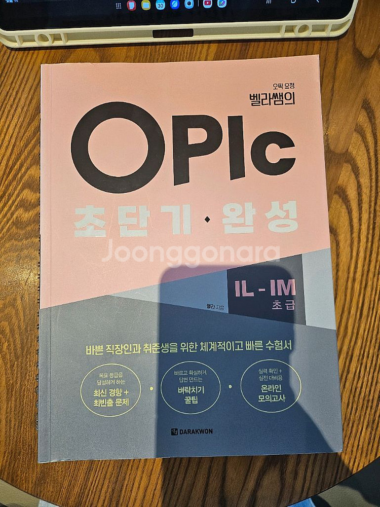 개인정보(거래정보)를 주고받는 행위는 사기에 노출될 수 있으므로 즉시 중고나라로 신고해 주세요벨라쌤의 오픽(OPIC) 초단기 완성 교재 (IL-IM) 1달전에 구매했고 필기없이 깨끗하게 썼어요 목표점수 받아서 판매합니다!