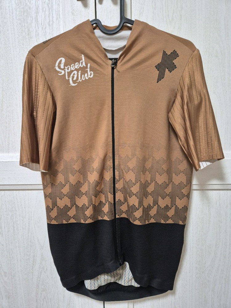 아소스 Equipe RS 져지 Speed Club 에디션, L 사이즈, 브론즈 애쉬 색상입니다 져지와 양말 세트 구성입니다 구매 후 1회착용 후 아소스 전용세제 세탁후 보관만 하였습니다.