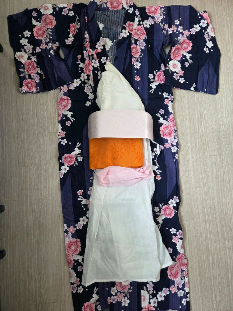 일본 긴자 기모노샵에서 직접 구입한 유카타 세트 판매합니다 구입한지 몇년됐지만 일본 하나비(불꽃놀이)때 2번 착용하고 세탁해서 잘 보관하고 있었습니다 구매하실 분 연락주세요 (유카타 + 지반 + 오비 + 코시히모) 게다는 한번 착용했는데 필요하시면 같이 드려요