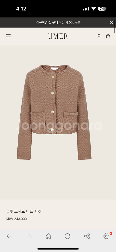 살롯 트위드 니트 자켓이에요. 마롱베이지 컬러로 어떤 옷과도 잘 어울리고, 앞 포켓 디테일이 예뻐요. 상태 좋은 제품입니다! 새상품이에요 ! 현재는 품절. 스커트 슬랙스 바지 더할나위없이 다 어울려요 두께도 겨울에 매우 입기도 좋습니다 ~