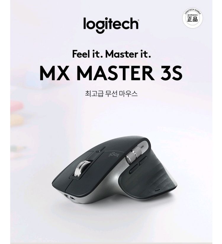 로지텍 MX Master 3S 무선 마우스입니다. 미개봉 상태 입니다 - 크기: 84 x 125 x 51 mm - 무게: 141g - MagSpeed 초고속 스크롤 - 저소음 클릭 - 멀티 디바이스 연결 가능 직구상품 정품 입니다 부팅시 정품 인증되여~ 택배 가능합니다 3500원 반값택배 2500원