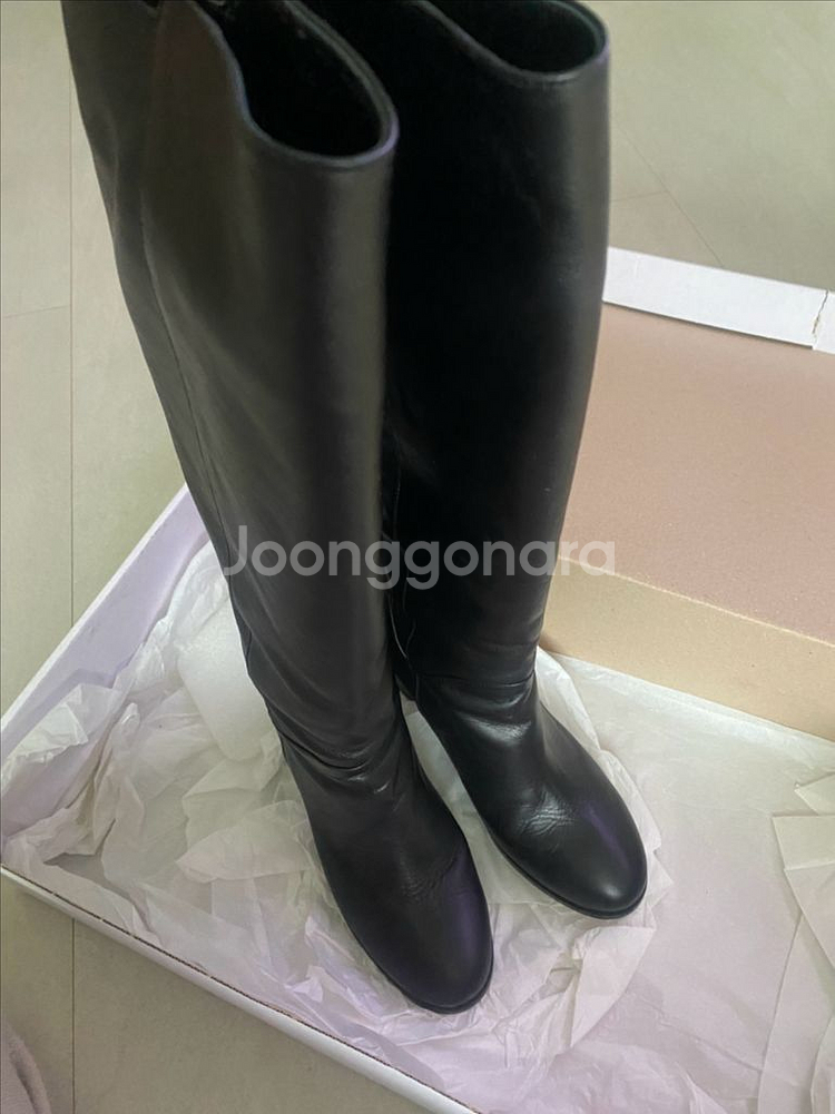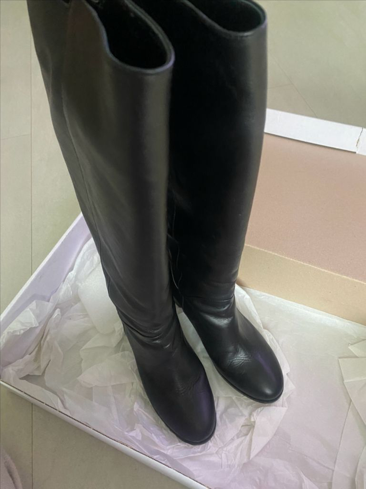 15eme 브랜드의 블랙 롱 부츠입니다. 사이즈 37-240, 굽높이8 센티에요. 상세사진으로 컨디션 확인하시면 될것같고, 굽에 비해 착용감 엄청 편안합니다. 전 235신는데 편하게 신으려고 240 이신분들한테 더 잘맞을꺼 같아요 전 두꺼운 양말신고 편하게 신었어요 . 맨위 부츠 겉둘레 38센티, 맨위 입구부분 안쪽 단면 17센티 입니다 . 웬만한 팬츠류입고 다 착용가능해요. 따로 지퍼없이 편하게 신을수있고 벗기불편하지 않아요. 제가 낮은굽만 신게되서 판매합니다. 배송비 포함금액이며, 구매금액의 절반가격으로 올려둔거여서 네고요청 정중히 사양합니다.
