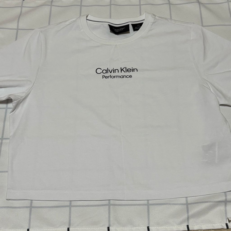 캘빈클라인 CK 사이즈 L 한 번도 안 입음 여름에 입으려고 샀다가 안 입었어요 캘빈클라인 퍼포먼스 크롭반팔티 새상품이에요 사이즈 맞나 입어 본게 다에요