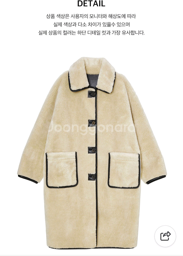 고급스러운 양털 코트예요. 베이지 바탕에 블랙 트리밍으로 포인트를 준 디자인이 정말 예쁘고, 상태도 깔끔해 보여요. 겨울철 따뜻하고 스타일리시하게 입기 좋을 것 같아요! 앳코너구입 양모 양면으로 입는 코트로 무스탕 재질과 양모재질이에요. 구입 후 미시착 입지않은 상태에요. 옷장 정리하며 보니 비슷한게 이미 여러개라서 새상품은 정리해요. 307000원 최저가로 팔고있고 중나검색해보셔도 중고도 이 가격보다 비싼걸로 아는데 저렴하게 정리합니다.