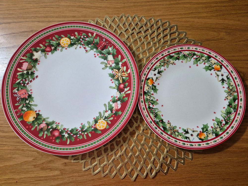 빌레로이앤보흐 윈터 베이커리 크리스마스 접시입니다 택붙은 새제품으로 2장 일괄판매합니다 디너: 27.5센티, 샐러드: 21.5센티 수원역 직거래가능