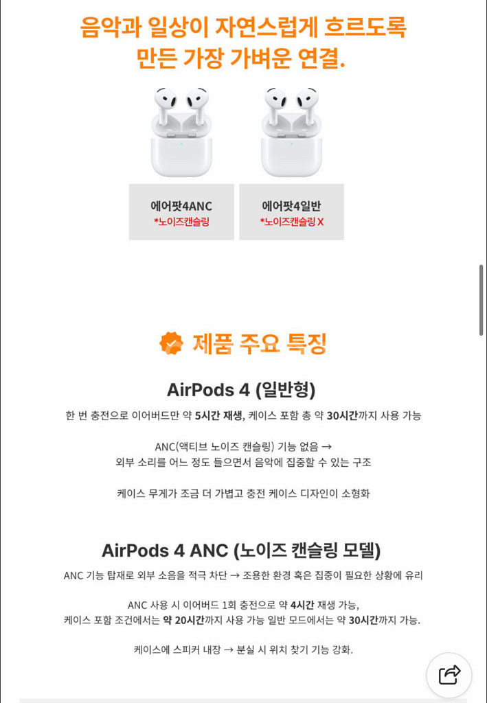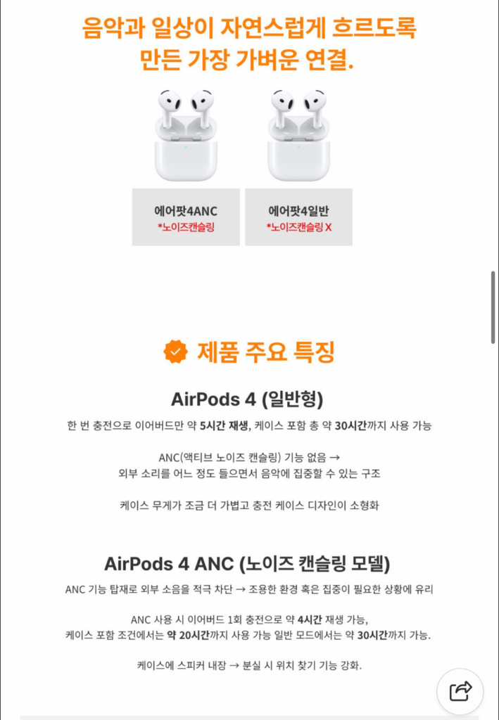 애플 에어팟4 노이즈캔슬링 미개봉 새제품
