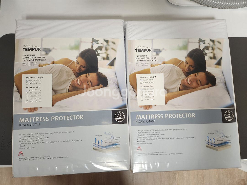 개인정보(거래정보)를 주고받는 행위는 사기에 노출될 수 있으므로 즉시 중고나라로 신고해 주세요템퍼 매트리스 방수커버와 매트리스 커버 세트예요. 템퍼 코리아 정품이고 미개봉 새제품 입니다. 싱글 사이즈 2세트 입니다.