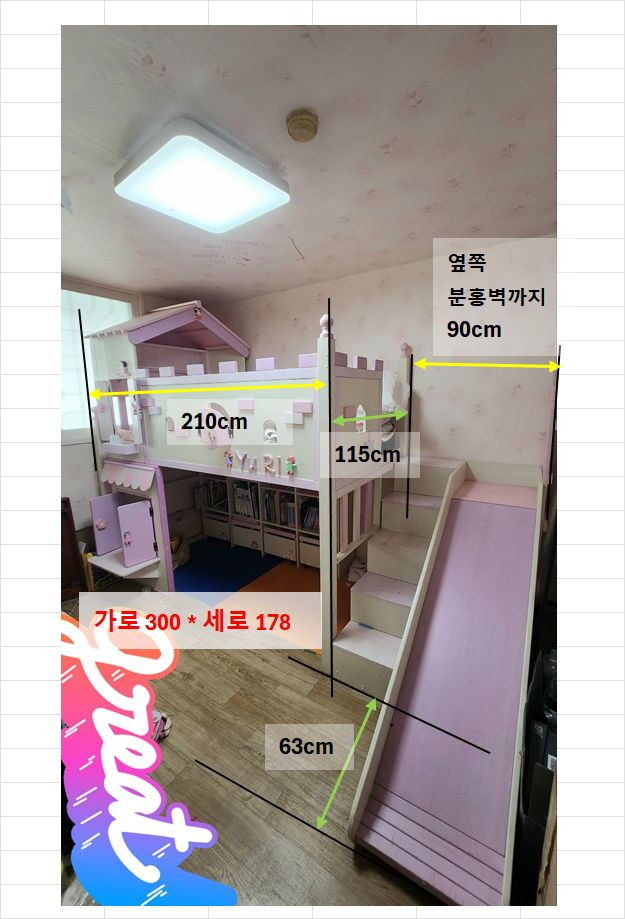 숨쉬는 초록가구 (친환경 던에드워드 페인트+좋은원목) 에서 구매한 미끄럼틀 있는 원목 침대입니다. 몇백 주고 샀었네요.. 사진은 최근 2주내외 찍은건데 실물은 조금더 사용감이 있는듯합니다. 보러오셔도되구요. 여자아이들 엄청 좋아합니다.... (구매할때는 제 마음이 저걸 어떻게 집어넣지 하면서 환장했었네요) 원목 정말 튼튼합니다. 2층쪽 창문이 잘때 몸부림이 심해서 약간 경첩이 헐거워져있는것같은데 요건 이전설치때 손보시면 될듯합니다. 매트리스 사이즈는 슈퍼싱글 사이즈이고 계단은 서랍장으로 되어있어 수납하기 좋습니다. (매트리스는 요청시 함께 가져가세요) 책꽂이 계단 및 서랍장등 다 분리해서 사용도 가능합니다. 광진구 자양동 2호선 강변역 부근 아파트입니다. 이전설치비용 발생할거라 직접 분해하셔서 가져가셔도되고 이전설치비용은 구매자분께서 부담하셔야합니다. 메세지 및 문의 환영입니다. 아이도 이제 3학년이고 이사예정이라 판매하게 되었습니다.