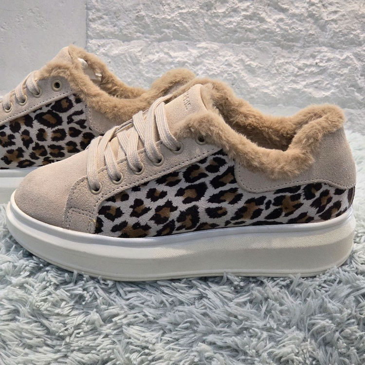 제품설명 베이지 스웨이드와 레오파드 패턴이 조화된 스프리스의 겨울 시즌 스니커즈입니다. 안쪽 전체가 퍼로 라이닝되어 한겨울에도 따뜻하며, 도톰한 미드솔이 안정감 있는 키높이 효과까지 제공합니다. 캐주얼·데일리룩에 포인트 주기 좋은 디자인입니다. 컨디션 전체적으로 깨끗한 편이며, 퍼 라이닝·어퍼 상태 좋음. 사용감은 자연스러운 정도. 장점 요약 ✔ 퍼 라이닝으로 겨울철 보온성 뛰어남 ✔ 레오파드 패턴으로 포인트 주기 좋은 스타일 ✔ 도톰한 미드솔로 편안한 착화감 + 자연스러운 키높이 ✔ 225cm 사이즈로 여성 데일리 착용에 최적 ✔ 스웨이드·퍼 조합으로 시즌 무드 확실