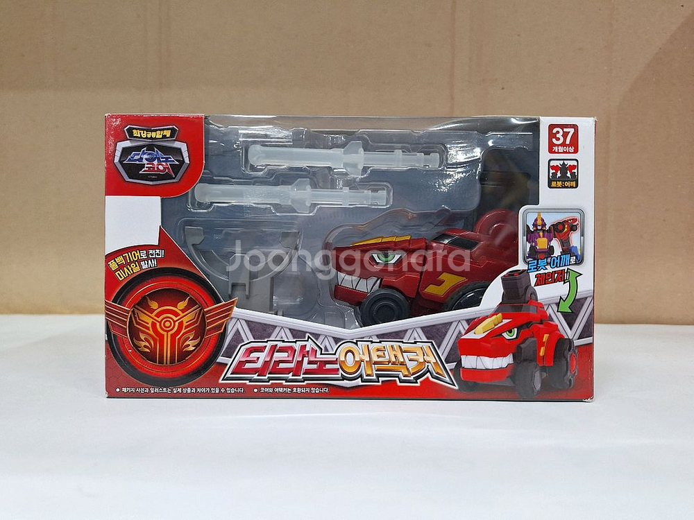 미개봉새상품 티라노어택커 판매합니다. 풀백기어로 전진하는 기믹과 미사일 발사하는 기능이있습니다.