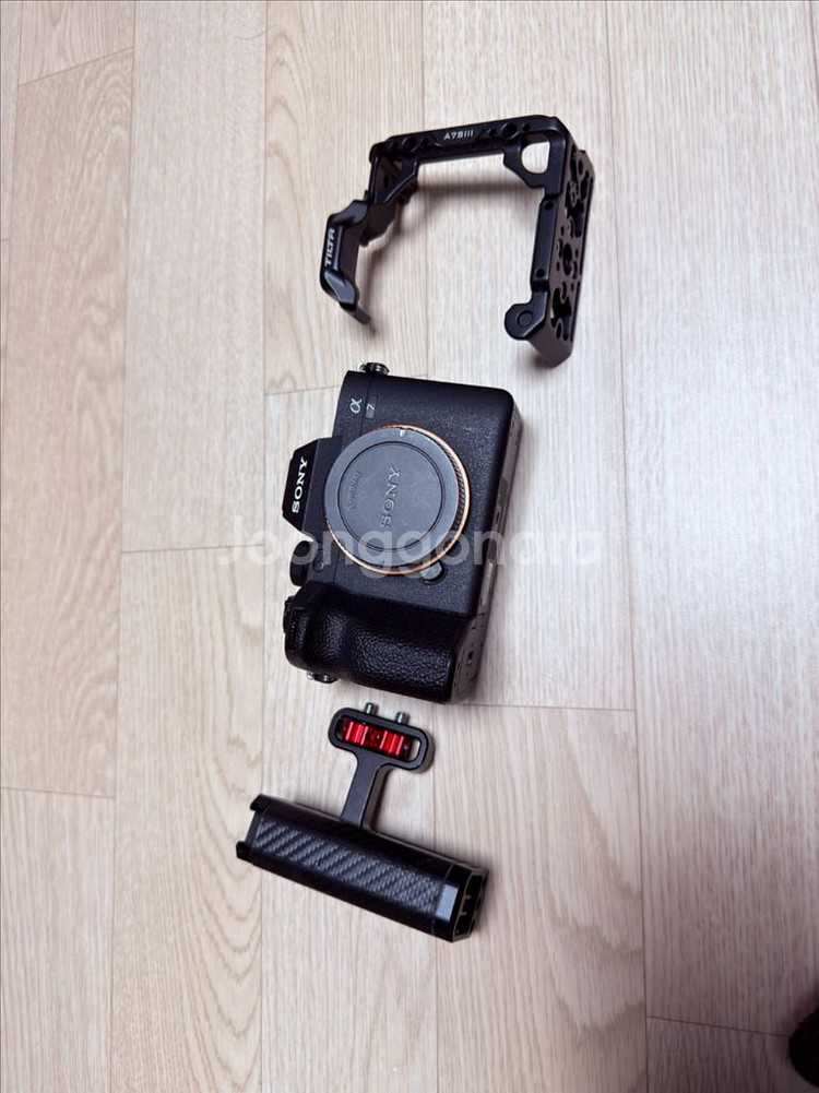 소니 A7M4 미러리스 카메라 판매합니다. 케이지와 핸들과 함께 구성되어 있어 바로 촬영 가능해요. 상태 양호하고 정상 작동 확인했습니다. - 구성 : 카메라 단품, 정품 배터리 1개, 틸타하프케이지, 사이드 핸들 - 컷수 8만대입니다 - 상태 깨끗합니다 - 직거래만 합니다