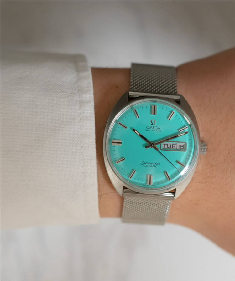 ■ 기본 정보 • 사이즈: 35mm • 무브먼트: 오토매틱(Automatic) • 다이얼: 티파니 블루 컬러 • 라인: Seamaster Cosmic • 구성품: • 시계 본품 • 사제 메쉬 스틸 밴드 • 상태: 작동 정상, 다이얼 색감 깔끔 / 케이스 & 글라스 컨디션 양호 ⸻ ■ 씨마스터 코스믹(Seamaster Cosmic) 라인 설명 씨마스터 라인업 중 Cosmic(코스믹) 모델은 1960~70년대 데일리 드레스 워치로 제작된 오메가의 대표 클래식 자동 모델입니다. • 당시 오메가의 내구성과 자동 무브먼트 기술력을 일상용 케이스에 담아낸 모델 • 일반 드빌 대비 스포티한 감성과 실사용 내구성을 모두 갖춘 라인 • 현재까지도 착용하기 부담 없는 균형 잡힌 드레스·캐주얼 겸용 빈티지 시계 ⸻ ■ 티파니 블루 다이얼의 매력 • 빈티지 오메가 다이얼 중에서도 티파니 블루 계열은 가장 인기 높은 컬러 • 일반 실버·화이트 대비 결정적인 존재감과 희소성 • 최근 컬러 다이얼 수요 급증에 따라 실거래가와 문의가 지속 상승 중 ⸻ ■ 사이즈 밸런스 • 35mm 케이스 사이즈 • 빈티지 기준에서는 실착 최적 사이즈 • 클래식 드레스 워치 착용감 선호 고객님들께 가장 많이 찾는 크기 ⸻ ■ 스트랩 구성 메리트 해당 모델은 밴드 활용도가 매우 높습니다. • 현재 장착: 사제 메쉬 스틸 밴드 • 클래식하면서도 캐주얼한 연출 가능 • 추가 구성: 사제 화이트 가죽 스트랩 • 드레스 워치 감성 극대화 ➡️ 상황에 따라 메탈 & 가죽 두 가지 스타일 모두 즐기실 수 있는 구성 ⸻ ■ 이 모델의 장점 정리 • 오메가 씨마스터의 내구성과 실사용성 • 희소한 티파니 블루 다이얼 • 요즘 가장 선호되는 35mm 자연스러운 사이즈 • 자동 오토매틱 무브먼트 • 가죽 & 메쉬 2스트랩 풀 구성 활용도 ⸻ ■ 거래 조건 • 경기도 구리 직거래 • 택배 · 퀵 거래 가능 • 네고 불가