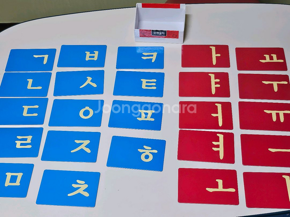 한국 몬테소리 모래글자 모래글자판은 모두 있고 종이상자 위 뚜껑이 없어요 지도안 필요하시면 사진파일로 보내드려요