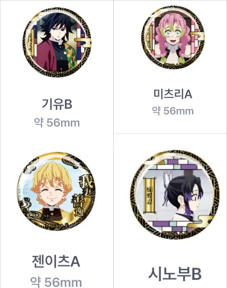 개인정보(거래정보)를 주고받는 행위는 사기에 노출될 수 있으므로 즉시 중고나라로 신고해 주세요귀멸의칼날 금장 캔뱃지 비닐 미개봉 새상품 젠이츠 시노부 미츠리 개당 6,000 젠이츠+시노부+미츠리+기유 일괄 24,000 반택+2000 일택+4000