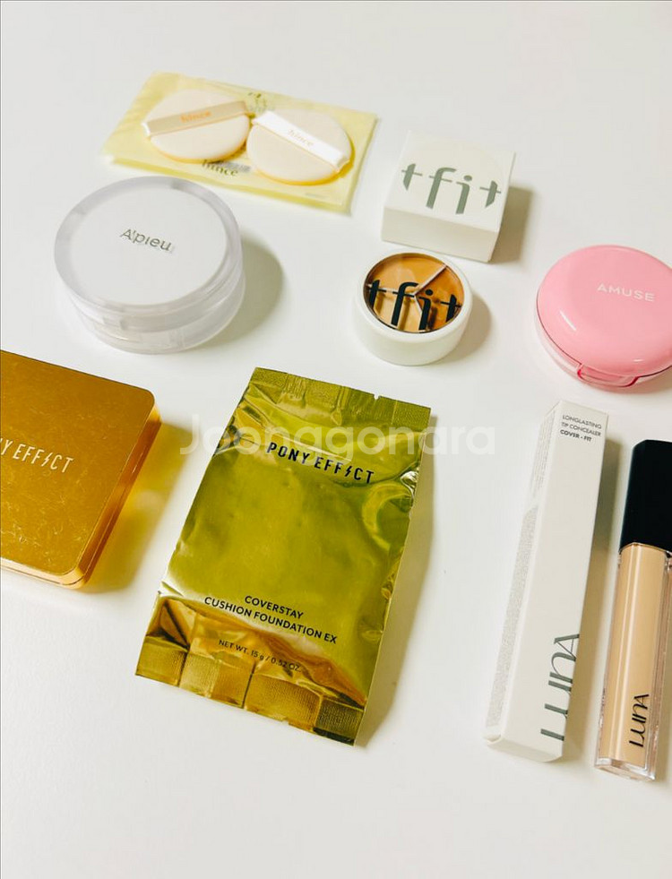일괄판매입니다 1. 힌스 세컨 스킨 글로우 쿠션 퍼프*2개입 - 새상품 2. 어퓨 워터락 피니셔 -1번 사용 -유통기한 27.01 3. 티핏 커버 업 프로 컨실러 01 뉴트럴 -1번씩 색상테스트 함 -유통기한 27.04 4.어뮤즈 듀 파워 비건 포켓쿠션 1.5 내추럴 -10회이상 사용 -유통기한 26.09 5.포니이펙트 커버스테이 쿠션 파운데이션 본품+리필 002 내추럴 아이보리 -본품은 3분의 1정도 남음, 리필 새상품 -유통기한 26.05 6.루나 롱 래스팅 팁 컨실러 01 바닐라 -5번 사용 -유통기한 26.09 문의 및 구매는 채팅주세요~