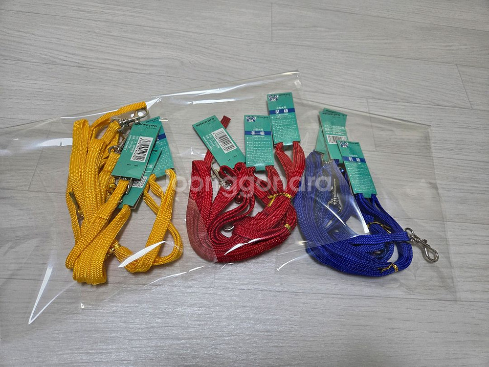 Seiwa Pro 소형견용 강아지 목줄 1개와 리드줄 2개씩 3세트 일괄입니다~ - 리드줄 총장 120cm, 폭 1cm, 목줄 총장 33cm,폭 1cm정도입니다~ 목줄은 구멍이 뚫리지 않은 타입이라 원하신 위치에 구멍 뚫어 사용하심 되어요. -새 제품입니다 - 색상은 노랑,파랑,빨강입니다 - 귀여운 방울이 달려있어요.