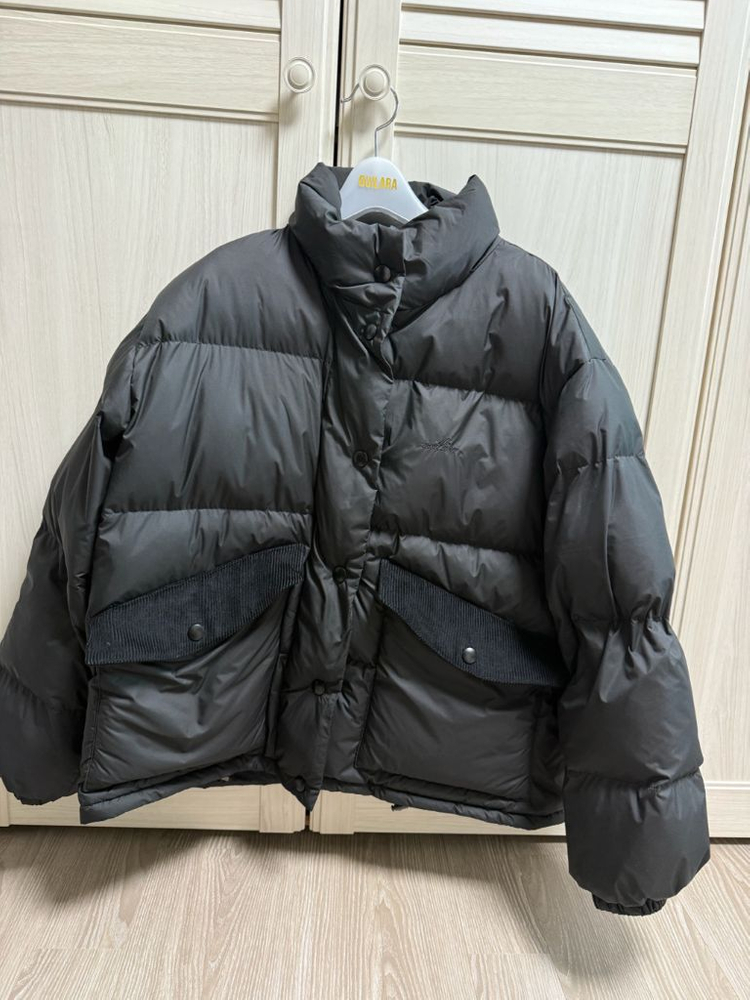 위라라 블랙패딩 s사이즈 태그가 달려있는 새 제품 상태이고, 깔끔한 블랙 컬러로 어떤 스타일링에도 잘 어울릴 것 같아요. 현대백화점 팝업에서 구입