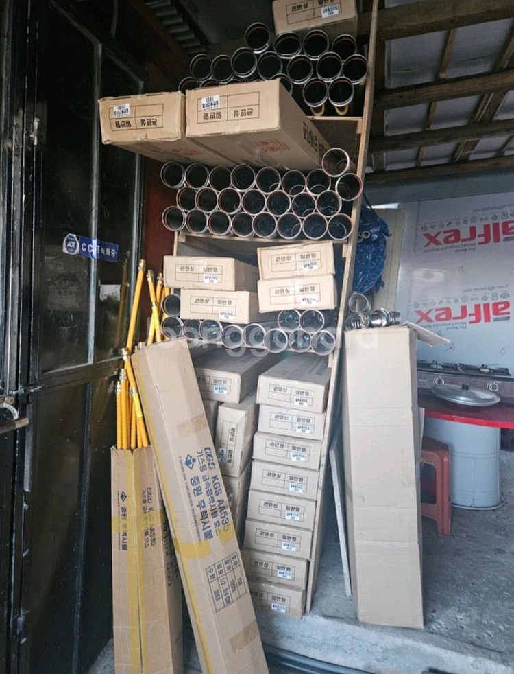 가스보일러 자재들입니다 총120만원 넘게 주고 구입한건데 업을 접어서 내놓습니다. 도시가스 연도Assy75mm(장안) 700 mm7개×11.300=79.100원 800mm13개(엘보없는것5개)×12.000=156.000원 1.000mm12개×14.000=168.000원 직관75mm 300mm56개×2.000=112.000원 500mm18개×2600=46.800원 700mm11개×3400=37.400원 1000mm36개×4.300=154.800원 후랙시블(중원)중 이경 가스용 1000mm25개×6930=173.250원 1200mm27개×7560=204.120원 1500mm16개×85080=136.080원 총합계 1.267.550원 강원도 강릉입니다.
