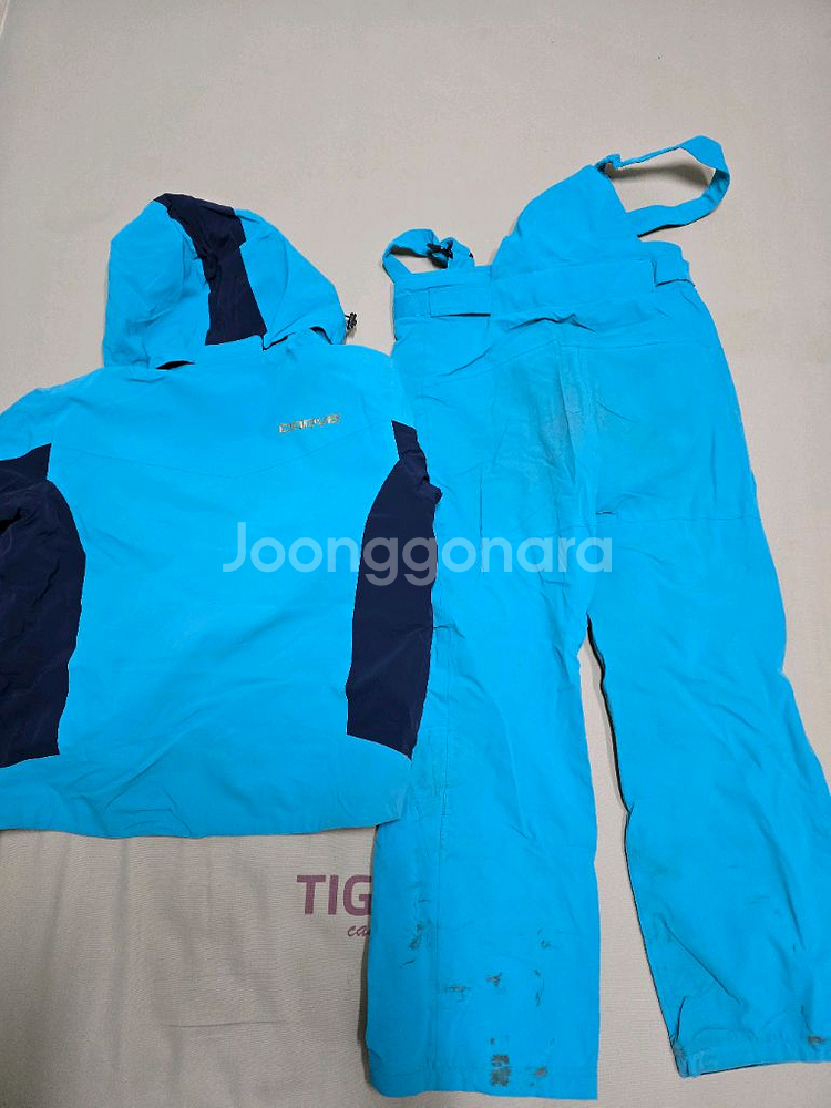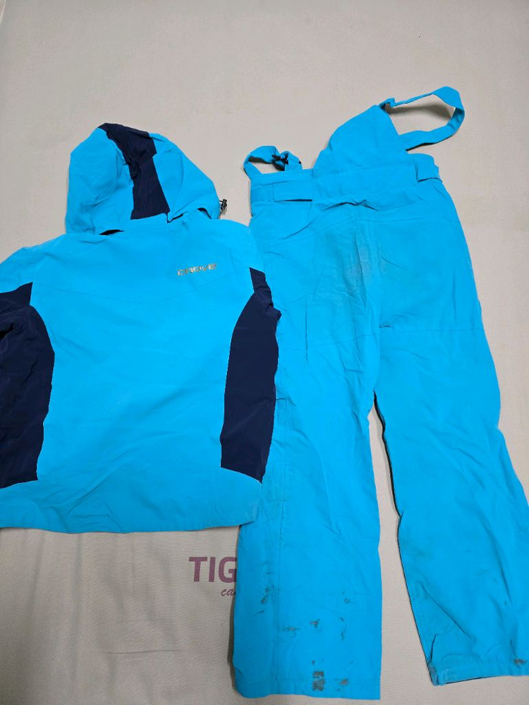 카브 브랜드 아동용 스키복 상하의 세트예요. 블루와 네이비 컬러 조합입니다 주니어 xl사이즈 입니다. 하단에 얼룩이 있어요 참고 하세요 부천 중동 입니다