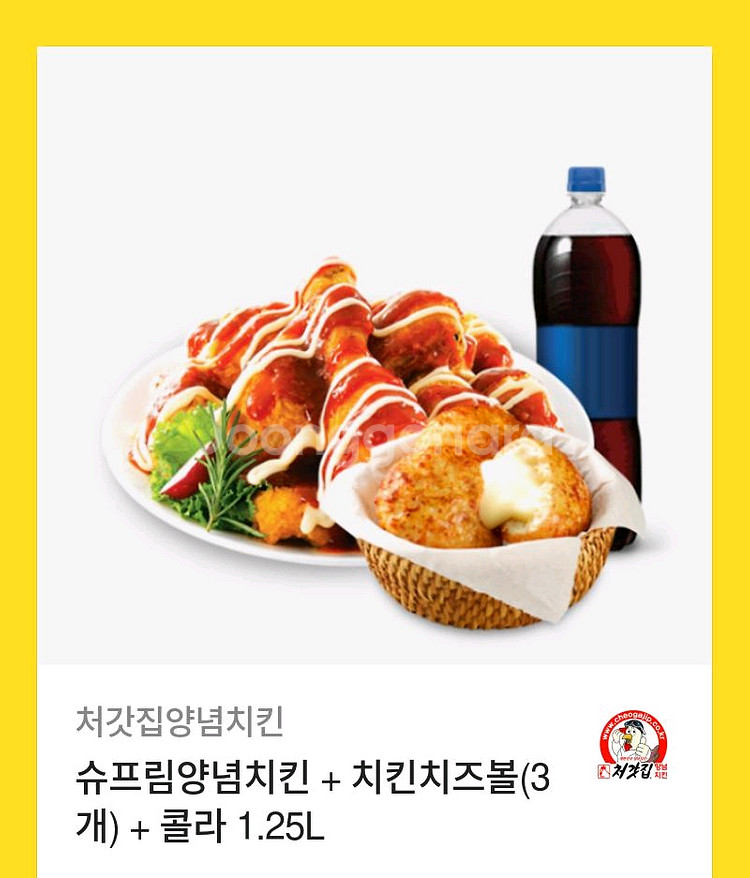 슈프림 양념치킨+치즈볼 3개+콜라 1.25L 기프티콘 팝니다