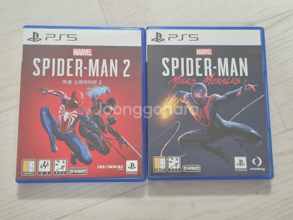 스파이더맨2 & 스파이더맨 마일스 모랄레스 PS5 CD 판매합니다. 둘 다 한 번씩 플레이하고, 엔딩봐서 판매합니다 스파이더맨2 : 35,000원 마일즈 모랄레스: 17,000원 일괄 판매: 50,000원