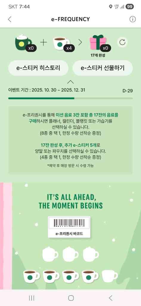 스타벅스 프리퀀시 일반 4개