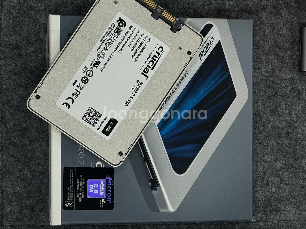 크루셜 MX500 2TB SSD입니다. 박스와 본체 모두 깨끗한 상태로 보이며, 고성능 SSD로 컴퓨터 업그레이드용으로 좋을 것 같아요. 직거래시 덕은동 리버워크입니다