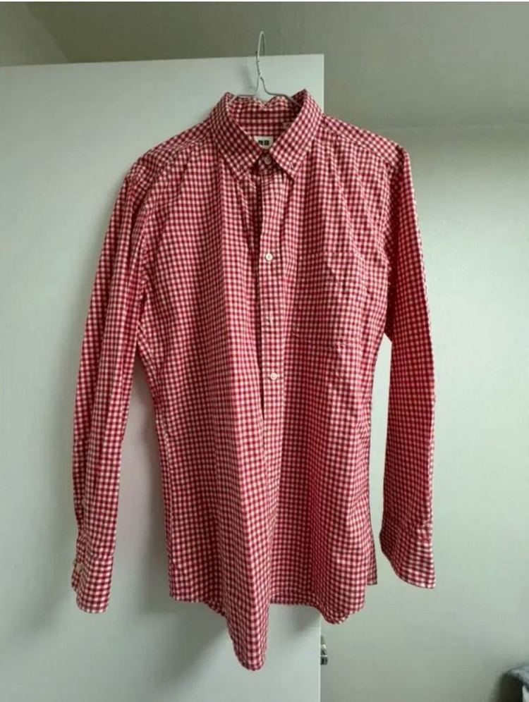 유니클로 레귤러핏 깅엄체크 셔츠 m