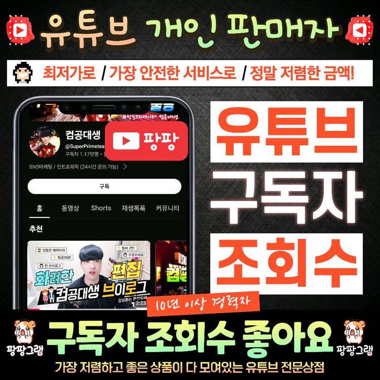 최저가 유튜브 구독자 조회수 좋아요 댓글 판매 / 인스타 틱톡도 가능!