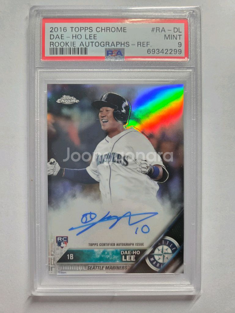 이대호 탑스크롬 루키 499한정 친필 싸인 온오토 리프렉터 PSA9 등급카드