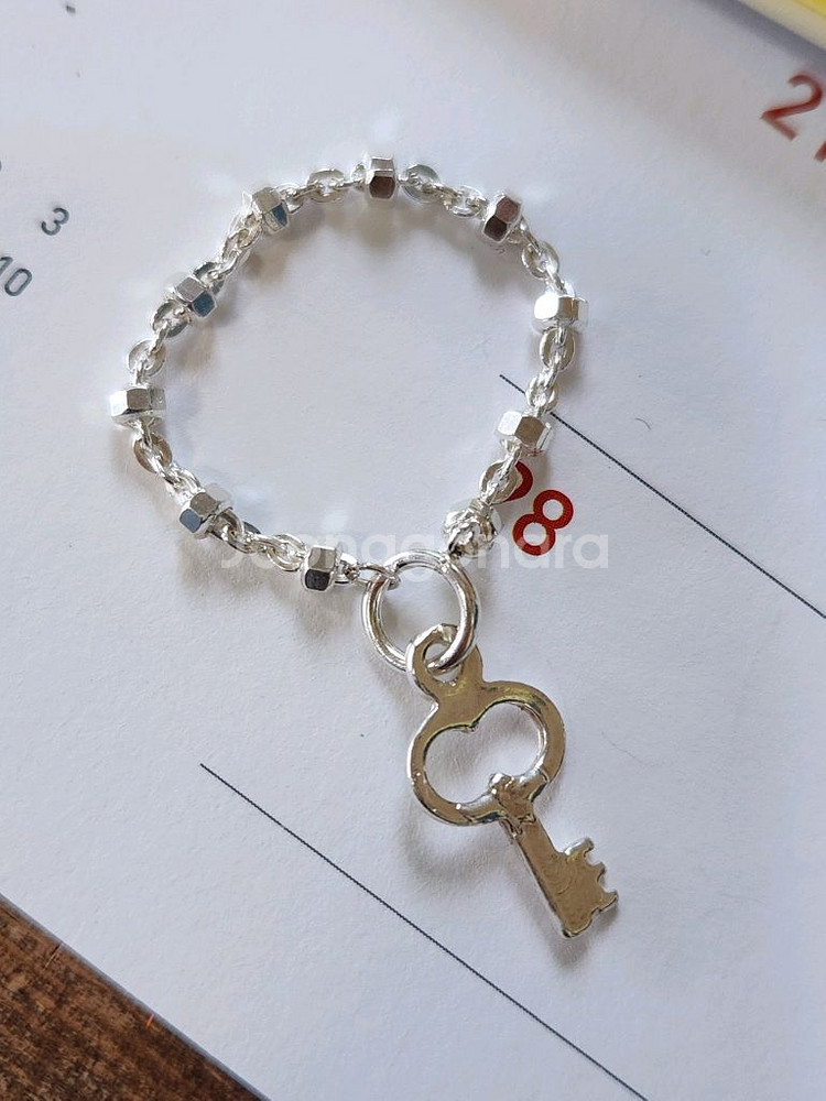 925 순은 소재의 키 참이 달린 이태리실버 반지예요. 체인과 함께 구성되어 있고 상태가 깨끗해 보입니다. 데일리로 착용하기 좋은 심플하고 예쁜 디자인이에요.