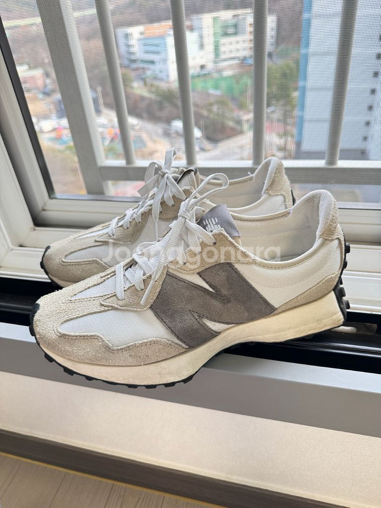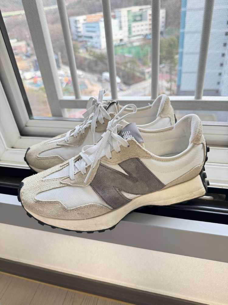 뉴발란스 327 화이트 그레이 275사이즈 몇번 착용하고 보관 중입니다 집에서 겉면만 브러쉬로 세탁해놔서 바로 착용하셔도 됩니다 직접 보시고 결정하셔도 되세요 의정부에 있어요