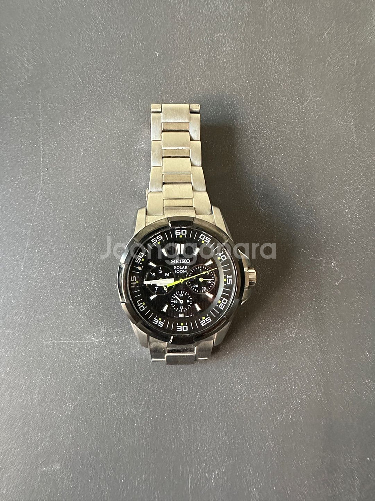 세이코 메탈 손목시계입니다 V1 4J -0BB0 태양광 충전용 배터리 8만원 교환 완료 견고한 스테인리스 스틸 소재로 제작되어 내구성이 뛰어나고, 세련된 디자인이 돋보입니다 어떤 스타일에도 잘 어울리는 실버 색상입니다 일상생활은 물론 특별한 날에도 착용하기 좋습니다 솔라충전입니다 작동은 하는데 충전배터리 교체해야 합니다 사진 구성품 단품입니다 박스없어요